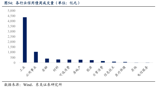 本周工业行业债券周交易量最大,达4,350.88亿元,其次分别为公用事业、金融、材料和可选消费。