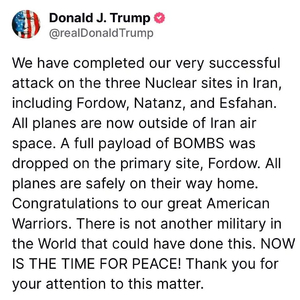 伊朗说,他们之前已经把主要核材料已经转移走了。个人感觉这很可能是真的。美军这一次行动几乎在全程直播下开展的,什么时候往哪里运什么飞机,携带什么弹药,飞行什么路线...关注的人在网上几乎都知道。某种意义上,这种明晃晃的全球直播,就是让伊朗提前准备把主要的设备和原材料转移走,但究竟是否转移就不知道了。