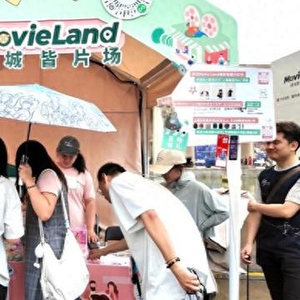 票根徽章、影戏院经典票夹、拍照用反光板、DIY电影路线的透明扇……各类制作精良又颇具匠心的电影文创让这里成为市集中最受欢迎的摊位,人们总是围聚在摊位前。本次市集是Movie Land线上小程序的“延伸版本”,韩语告诉记者:“小程序中的复古电影地图收录上海50余家影戏院与电影地标,提供7条打卡路线,观众可用脚步在城市中丈量银幕景深。根据影迷的提议,小程序中打卡兑换的电子透卡,可在市集中兑换实物贴纸、透卡与电影票夹等文创产品。”此外,小程序套餐中包含餐饮、旗袍拍摄等不同业态,“Movie Walk时体验到与电影相关的更多服务,在‘吃好喝好’中发生更多故事”。