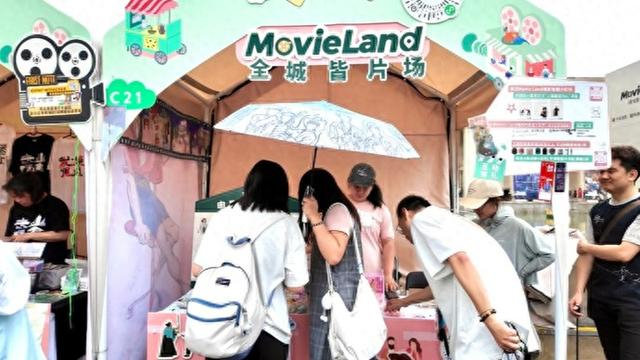 “Movie Land”摊位上工作人员在向观众介绍文创及“玩法”。(孙彦扬摄)
