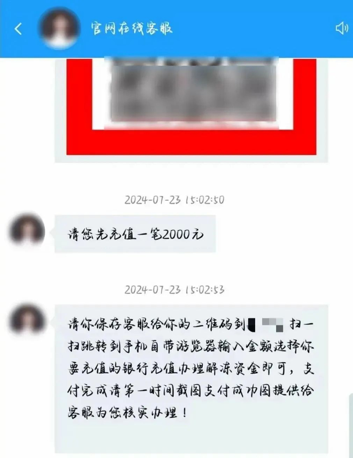 受害人支付后发现钱款被扣。诈骗分子随即以“需用父母手机验证退款”等理由,诱导受害人视频通话,持续诱骗其多次扫码付款,并在提供虚假支付凭证后便失联。