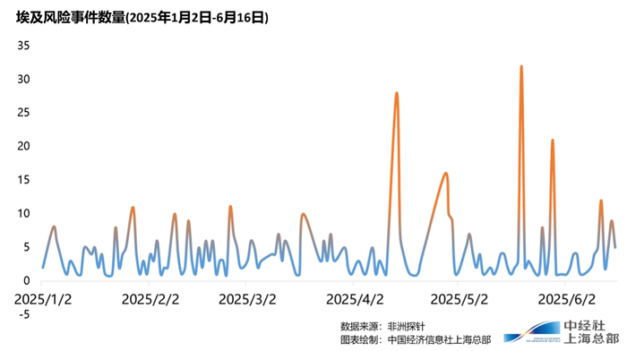近日,埃及总理马德布利宣布成立一个危机委员会,以应对当前以色列与伊朗冲突对埃及的潜在影响。“非洲探针”监测数据发现,2025年1月2日至6月16日期间,埃及累计发生各类风险事件556起。其中,政治安全、社会运行、国别安全风险事件数量位居前三位,占监测期内事件总量的比重分别为48.6%、20.72%和13.56%。