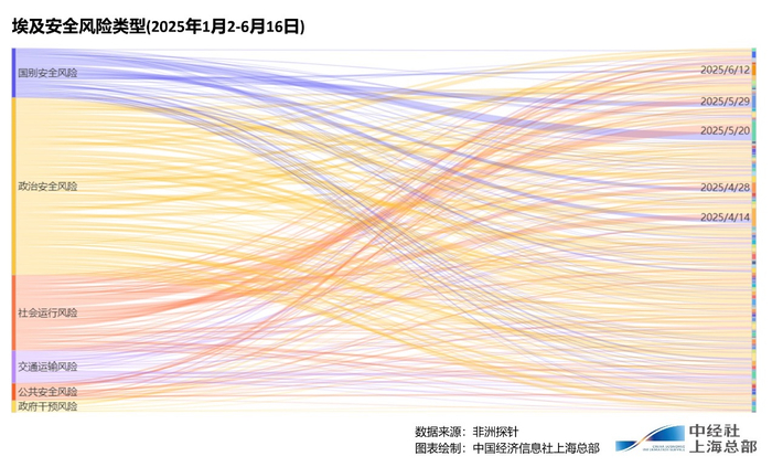 通过事件分析发现,埃及在政治安全、国内安全、社会运行、交通运输、公共安全、政府干预等方面存在较大风险压力。