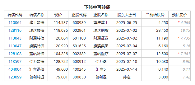 首华转债、海亮转债、浦发转债、鹰19转债、游族转债。