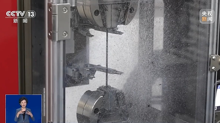 在生产线上完成的碳纤维产品,还需经过严格的性能测试。在实验室,记者见到了刚刚生产出来的碳纤维,正在进行强度测试。