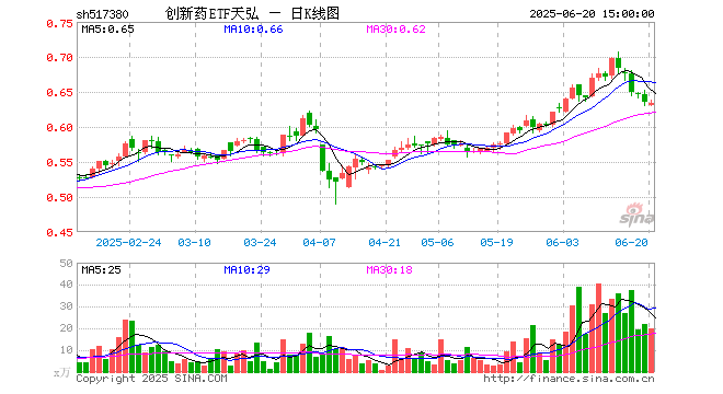 6月20日创新药ETF天弘(517380)份额增加800.00万份,最新份额7.50亿份,最新规模4.76亿元