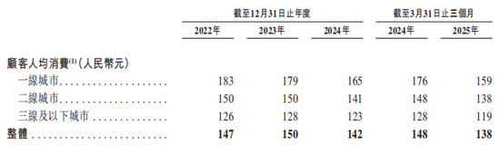 对此,巴奴解释称,“主要是由于我们主要通过积极调整产品组合扩展客群”,但却致使顾客人均消费从2023年的150元减少至2024年的142元。