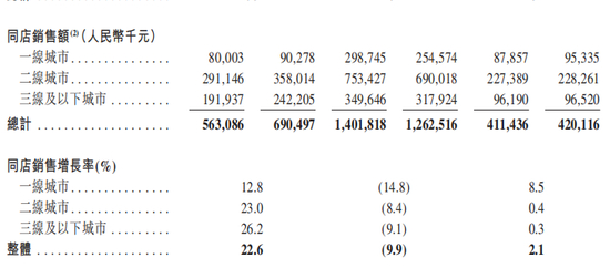 近3年同店销售额增长 人均消费下降