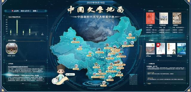 ▷首张中国文学地图发布。中国新时代文学大数据中心推出了首张中国文学地图,地图以标准中国地图为底图,以文学地标作为切入点,将作家、作品、活动等海量文学数据在中国地图上标注呈现。目前,地图上共标注了文学地标1148个,其中包括文学场馆124个、名人故居218个、书店书屋20个、文学相关景区158个、文学相关遗迹628个,覆盖全国各地。