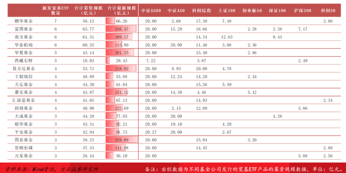 1.3 新进5家公司管理规模超百亿元,布局核心宽基标的头部公司领先优势不断加强