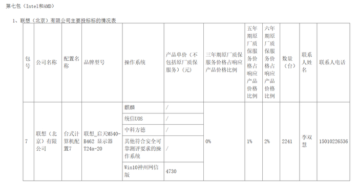 第七包(Intel和AMD芯片)联想(北京)有限公司中标了第七包,中标金额为1059.993万元。