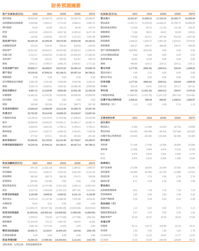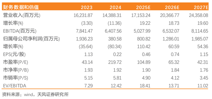 综上:我们预计公司25/26/27年营收达到172/204/244亿元,归母净利润达到8.01/12.86/19.85亿元。