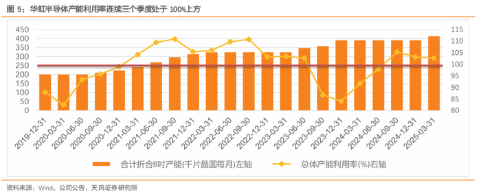 满产叠加成本上升,公司或开启新一轮涨价周期。根据公司公告,华虹半导体1Q25总体产能利用率达到102.7%,产线处于满产状态,二三季度进入传统旺季,预计市场需求日趋旺盛。同时4月以来中美关税持续变动,半导体制造所需原材料和设备的获得成本或有提升,增加了成本端的压力。在供需紧张和成本上升的双重作用下,我们预计晶圆代工行业普遍存在涨价预期。华虹半导体作为特色工艺代工龙头,具备较强的定价能力,有望通过产品涨价来转嫁成本压力,提升盈利水平。