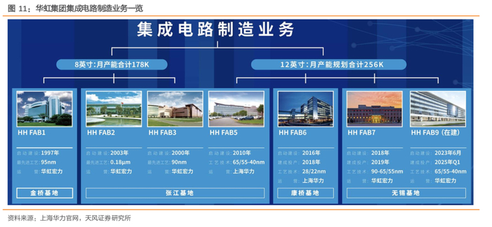 根据天眼查,截至2025 年6月15日,华力微电子持有华力集成电路(6 厂)54%股权和华虹成都51%股权,关注后续华虹集团的资产安排。