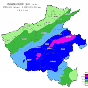 具体预报如下:6月25日至26日,我省黄淮之间将有一次强降水天气过程,南阳、信阳西部、驻马店、平顶山、漯河、周口、许昌、郑州东部、开封、商丘、新乡东部部分县(市、区)有大到暴雨,局部大暴雨,并伴有短时强降水、雷暴大风等强对流天气。累计降水量西南部、中东部40到80毫米,局部100到150毫米,个别站点可达200毫米;西部、西北部5到15毫米,其他县(市、区)20到40毫米。最大小时降水量40到70毫米,个别站点可达90毫米左右。流域面雨量:长江流域的唐河、淮河流域的沙颍河和涡河50到70毫米,其他子流域10到40毫米。