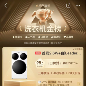 近日,海尔智家旗下的Leader一体三滚筒洗衣机爆火。据公司介绍,Leader一体三滚筒洗衣机首发仅16小时,订单就突破2万台;618期间更是直接冲上京东金榜TOP1,市场热度只增不减。
