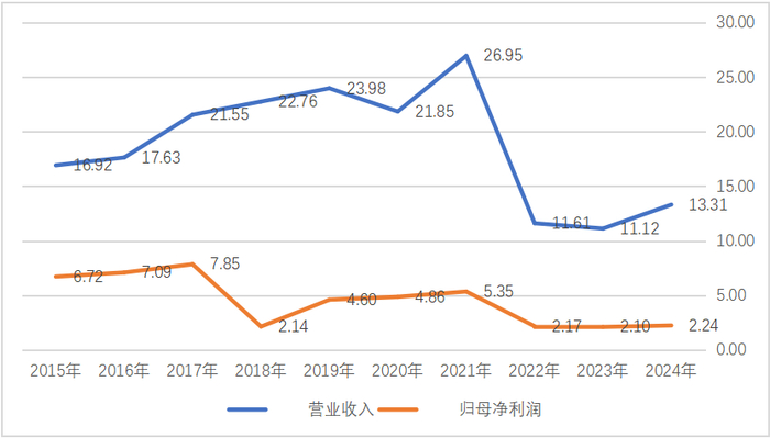该行近年来业绩的跌宕起伏,在营业收入及归母净利润的变化上一览无余。2021年,青海银行的营业收入曾高达26.95亿元,但之后下跌过半、时至2024年也仅有13.31亿元。归母净利润的变动也与之类似,从2021年的5.35亿元、跌至2024年的2.24亿元。