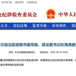中央纪委国家监委网站讯据新疆维吾尔自治区纪委监委消息:新疆维吾尔自治区哈密市委常委、政法委书记杜海涛涉嫌严重违纪违法,目前正接受新疆维吾尔自治区纪委监委纪律审查和监察调查。