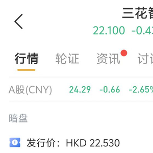事实上,该股在暗盘阶段的报价已显示出投资者对股价的态度。6月20日,华盛通证券显示,三花智控收报21.85港元,较IPO价格跌超3%。