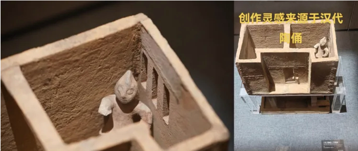 周先生称在网上看到南充博物馆内和奥特曼类似的汉代陶俑造型。于是,他专门前往现场参观,从多个角度拍下照片和视频,回去后将原来的雕刻造像进行了修改。