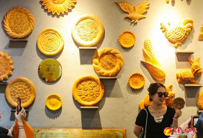 2018年诞生的大巴扎步行街曾是居民小巷,如今它已成新疆“网红地标”。今年提档升级后,最吸睛的当数馕主题馆:穹顶状的立体门头下,游客们举着刚出炉的热馕与“馕家族”文创合影——在馕小院里,打馕师傅的木槌起落间,小麦香气漫过青石板路;馕主题馆内,千年馕文化史以多媒体形式铺展;馕家族文创店中,硅胶制成的“烤肉串”“馕饼”钥匙扣让年轻人爱不释手,传统美食正以潮玩姿态走向世界。