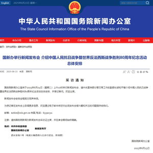 国务院新闻办公室将于2025年6月24日(星期二)上午10时举行新闻发布会,请中央宣传部分管日常工作的副部长胡和平等介绍中国人民抗日战争暨世界反法西斯战争胜利80周年纪念活动总体安排。