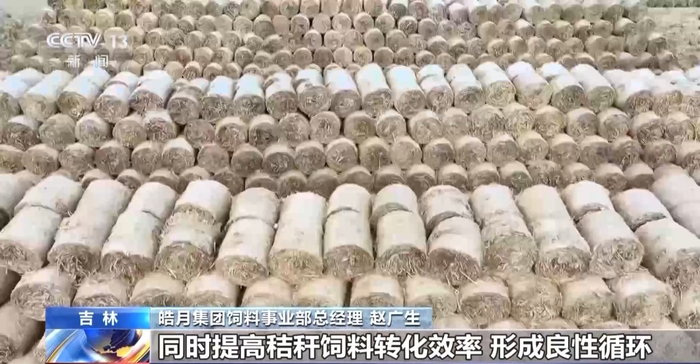 皓月集团饲料事业部总经理 赵广生:吉林省是中国的大粮仓,每年要产生4000多万吨的玉米秸秆。经过我们技术转化,用菌、酶,包括菌酶协同技术,降低养殖户饲养成本,同时提高秸秆饲料转化效率,形成良性循环。