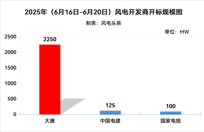 大唐开标2250MW,金风科技中标1500MW,远景能源中标750MW。