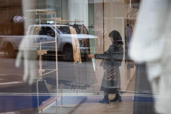 2025年3月28日,顾客在美国纽约市一家服装店选购服装。新华社发(郭克 摄)