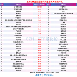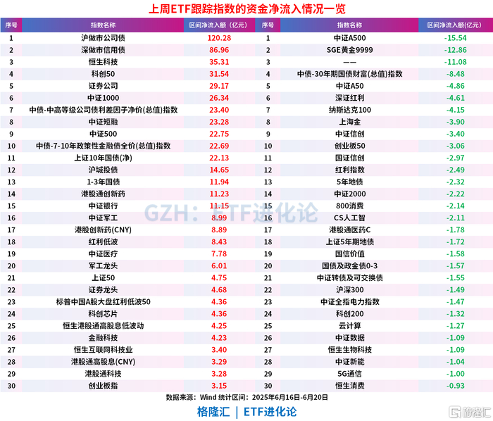 30年国债ETF、黄金ETF基金、中证A500ETF龙头和深红利ETF上周合计净流出24.89亿元。