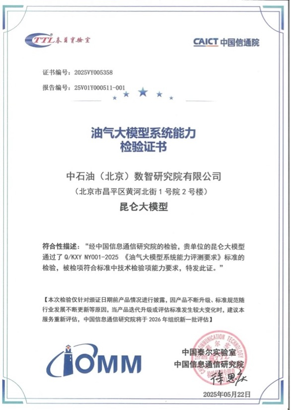 2024年8月,昆仑大模型完成备案,成为中国能源化工行业首个通过备案的大模型;2024年11月,中国石油围绕行业大模型、应用场景、数据集、AI中台、算力中心等五大目标任务,完善“1+4+N”架构体系,发布700亿参数昆仑大模型建设成果;2025年5月28日,中国石油发布3000亿参数昆仑大模型,标志着中国石油在人工智能领域又迈出关键一步,全力推动“人工智能+”行动走深走实。