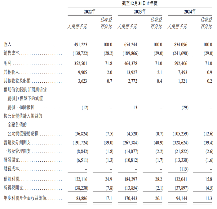《财中社》注意到,圣桐特医近年来业绩不断上涨。公司营收从2022 年的4.9亿元增长33.2%至2023年的6.5亿元,并于2024年进一步增长27.5%至8.3亿元;经调整净利润(非国际财务报告准则计量,即年度利润及全面收益总额减按公允价值计入损益的金融负债的公允价值变动亏损)在相应年度分别为 1.2亿元、1.8亿元及2亿元,2023-2024年分别同比增长44.6%及13.7%。
