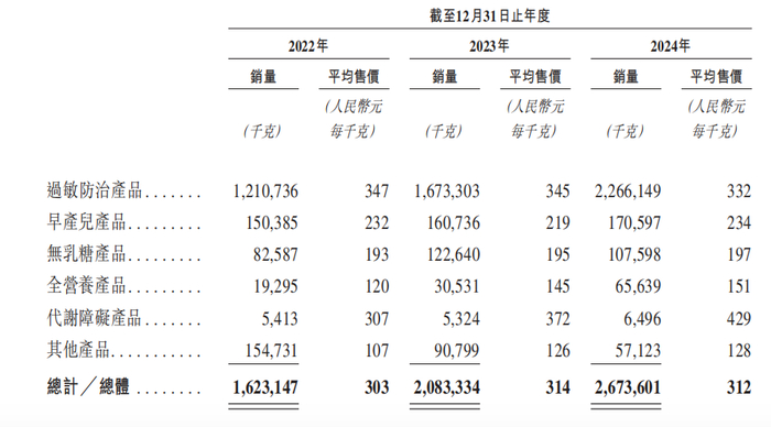 圣桐特医的基本盘是过敏防治产品,2022-2024三年间逐渐增长至占总营收超90%,乳蛋白过敏婴配粉是如今特配粉行业的销售主力。婴童智库&奶粉智库数据中心数据显示,2024年,淘宝+天猫平台特配粉的总销售为13.3亿元,同比增长23.6%。其中,乳蛋白过敏配方即部分水解奶粉(1.48亿)、氨基酸+深度水解(10.66亿)占据了特配粉销售总额的90.37%。