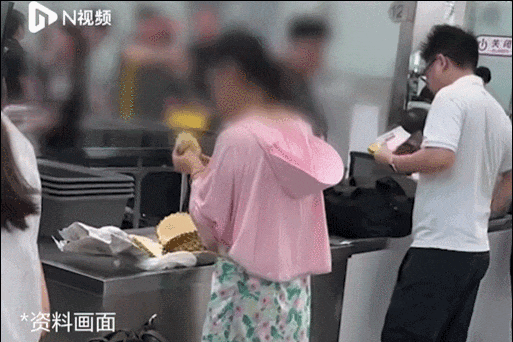 一女子机场托运榴莲被拦,两人“炫狂”3个榴莲,还喊路人帮吃