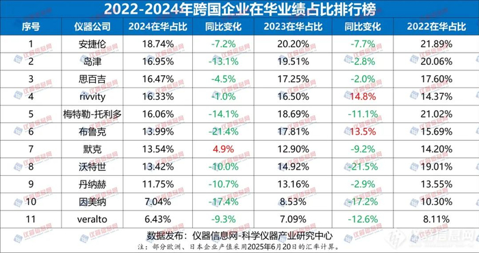 导读:2024年跨国仪器企业在华营收普遍下滑,仅默克实现增长,多家企业连续两年下降,受中美贸易摩擦、经济环境及市场竞争等多重因素影响。