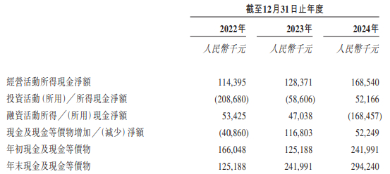 2022年至2024年,佰泽医疗经营活动所得现金净额分别为1.14亿元、1.28亿元、1.69亿元。