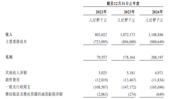 2022年、2023年、2024年,佰泽医疗的收入分别为8.03亿元、10.72亿元、11.89亿元;年内亏损分别为7551.5万元、2440.6万元、355.7万元。