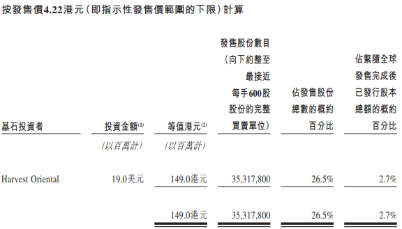 佰泽医疗的基石投资者为Harvest Oriental。代表Harvest Oriental SP(“Harvest Oriental”)及为其利益行事的Harvest International Premium Value (Secondary Market) Fund SPC为于2024年10月成立的基金。Harvest International Premium Value (Secondary Market) Fund SPC为于开曼群岛成立的独立投资组合公司,且为独立第三方。Harvest International Premium Value (Secondary Market) Fund SPC的91%管理股份由嘉实国际资产管理有限公司(“嘉实国际资产管理”)持有,而9%管理股份由嘉实国际投资有限公司(“嘉实国际投资”)持有。