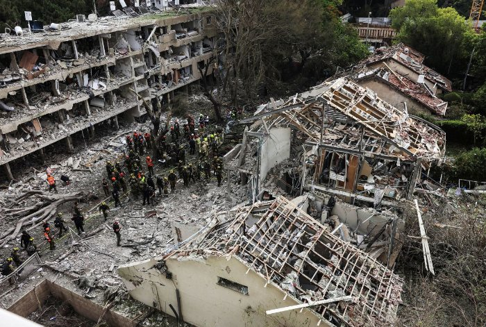 6月22日,特拉维夫建筑遭伊朗导弹袭击。路透社
