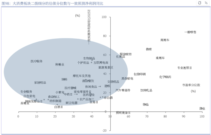 配置思路上,看好财报拐点出现+政策支持力度与确定性大+纯内需板块。一是政策基调明确,政策补贴力度明显抬升,二是财报积极线索出现,可视为一段行情的前夕。根据政策补贴力度占营收比重,盈利增速和政策语调,服务业值得重视。财报拐点出现+政策与产业逻辑通畅+排除基数效应&外需影响板块,这一类的本质是政策逻辑稍弱、产业逻辑不证伪下,财报基本面趋势性向好确定性很强。必选消费、可选消费的耐用消费品板块也有望走出结构性行情。(来源:天风证券20250620《2025年中期策略》)