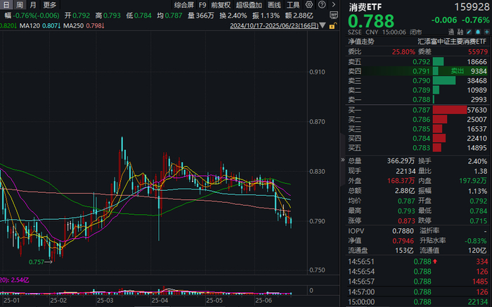 国际局势风云万变,白酒低迷,消费ETF(159928)回调0.76%!2025年中期策略发布,大消费再获机构关注!