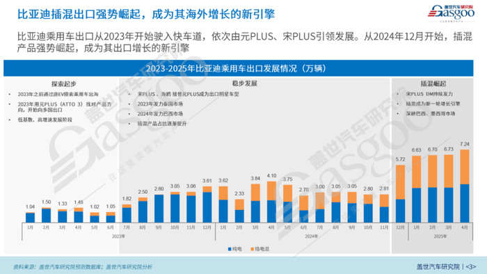 聚焦其产品战略,比亚迪乘用车的出口之路经历了从“纯电先行”到“插混突破”的重要转变。