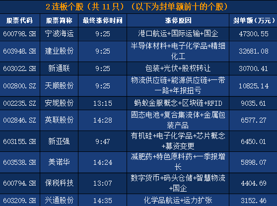 3、今日三大指数低开高走,沪指领涨。盘面上,跨境支付、港口航运、油气等板块涨幅居前,其中优博讯、神州信息、宁波海运等涨停。截至收盘,沪指涨幅0.65%,深成指涨幅0.43%,创业板指涨幅0.39%。两市成交金额1.12万亿,较上个交易日放量549亿。