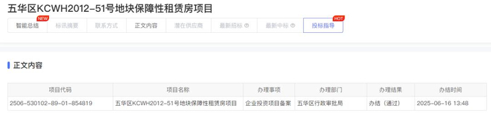昆明科融房地产开发有限公司已于6月16日下午,就五华区KCWH2012-51号地块项日向相关部门上报备案,拟将其打造为保障性租赁住房项目。