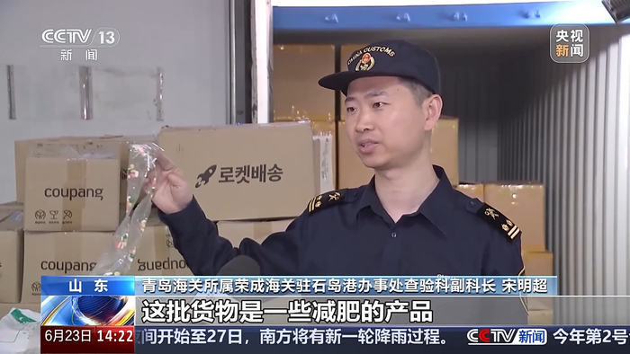 青岛海关所属荣成海关驻石岛港办事处查验科副科长 宋明超:经货物代理人确认,这批货物是一些减肥的产品,这些减肥的产品有不同的规格,有4粒、6粒、9粒、10粒等多种规格,大约是36万多粒。