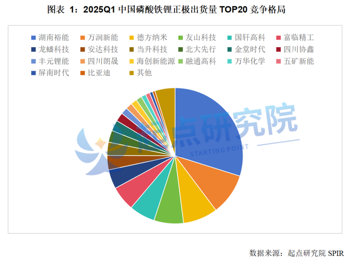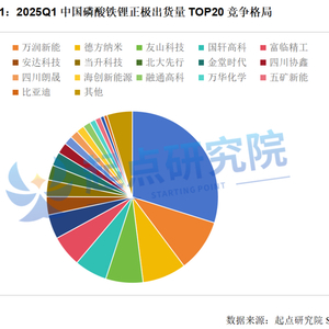 起点研究院SPIR数据显示,2025Q1中国磷酸铁锂正极出货量达74.6万吨,同比增长88.9%,增长原因主要为动力领域和储能领域磷酸铁锂电池出货持续增长。