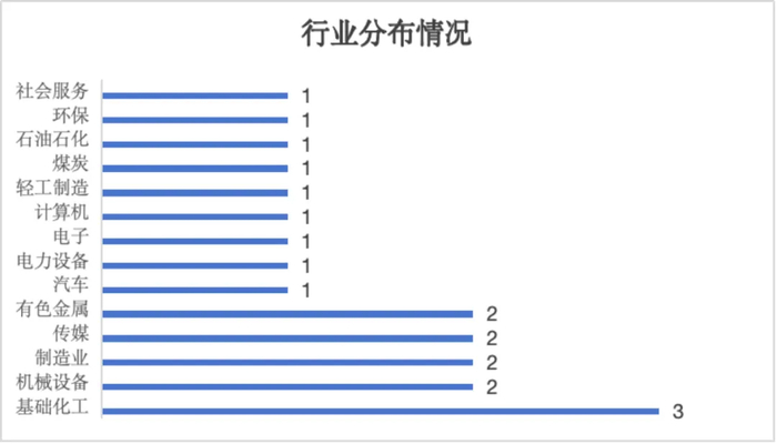 在行业分布方面,传统行业仍占据重要位置。其中,3家企业属于基础化工领域,机械设备、制造业、有色金属各2家企业,其他行业如电力设备、石油石化、煤炭等也都有国资介入的身影。这显示出国有资本正在多个关键领域积极布局,推动产业转型升级。