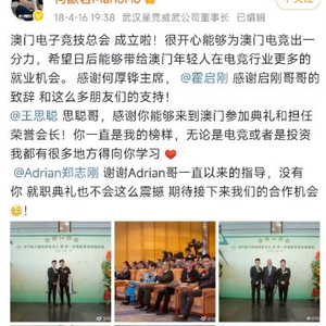如今,何猷君的个人微博上仍有关于王思聪的一则信息,即2018年澳门电子竞技总会成立,何猷君任职澳门电竞总会的总会长,王思聪任荣誉会长。彼时23岁的何猷君称,“思聪哥一直是我的榜样,无论是电竞或者是投资,我都有很多地方得向你学习。”