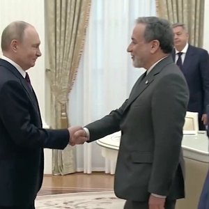 当地时间23日,俄罗斯总统普京在莫斯科会见到访的伊朗外长阿拉格齐。