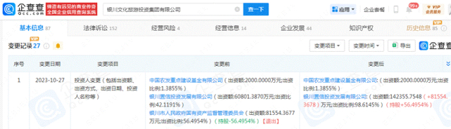 企查查显示,银川旅投原是银川市国资委控股子公司,后者于2023年10月退出控股股东行列。